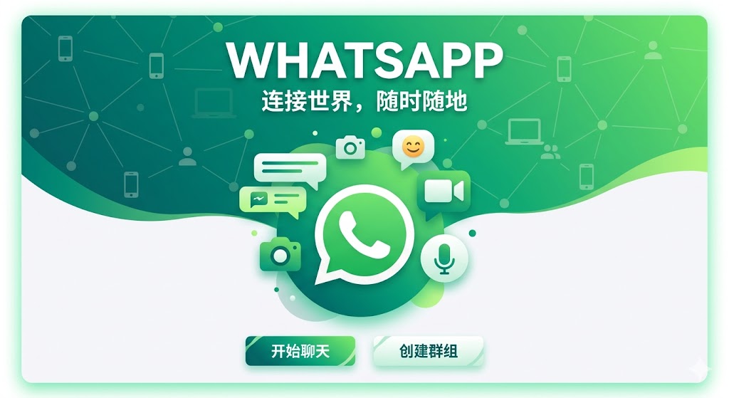 1. 色调: 经典的 WhatsApp 绿色 渐变背景,给人一种官方、安全的视觉暗示。